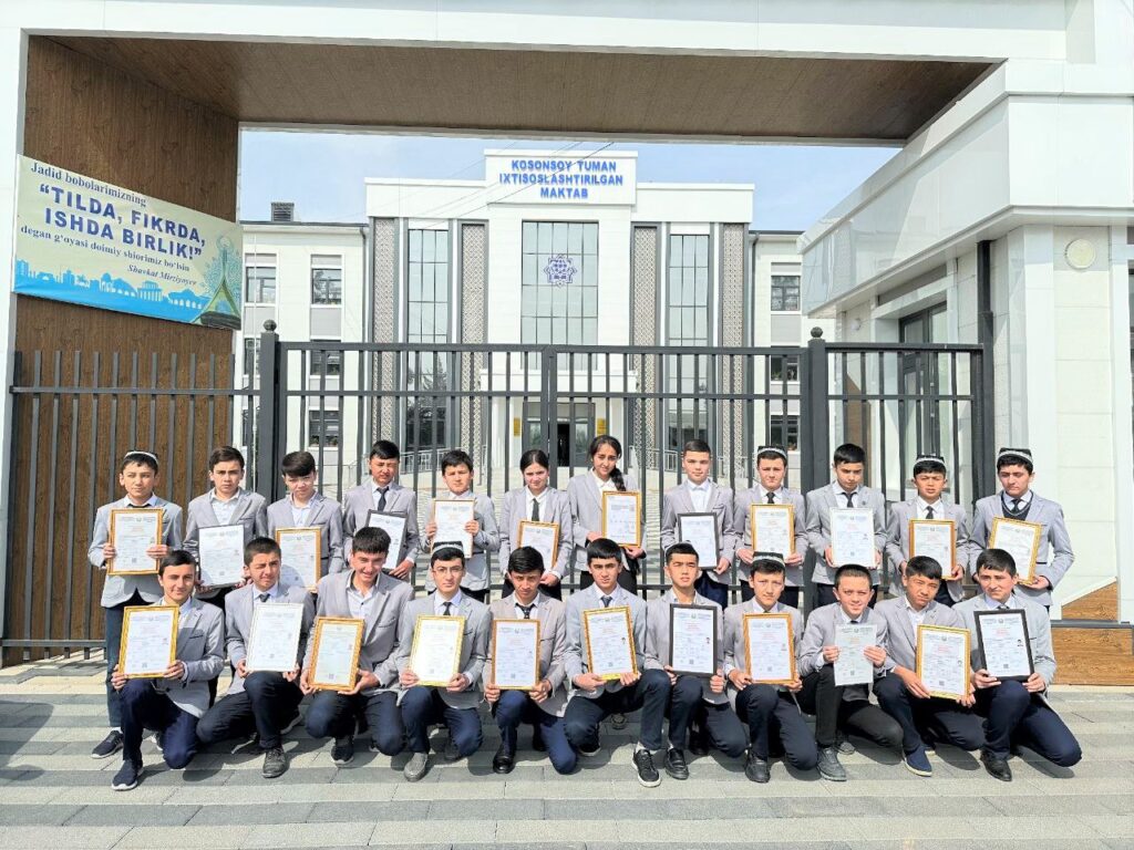 Kosonsoy tuman ixtisoslashtirilgan maktabning 8-sinf o‘quvchilarining barchasi ingliz tilini bilish darajasini belgilovchi xalqaro va milliy sertifikatlar (IELTS, CEFR) sohibiga aylandi. Bu yutuq ta’lim muassasasida faoliyat yuritayotgan tajribali ustoz va murabbiylarning samarali mehnati natijasi sifatida e’tirof etilmoqda. O‘g’il – qizlar shu bilan cheklanib qolmasdan, matematika, fizika, tarix, ona tili va adabiyot fanlaridan ham milliy sertifikatlarni qo‘lga kiritish hamda muddatidan avval talabalik imkoniyatiga ega bo‘lishni rejalashtirmoqda. Yorqin kelajak sari munosib tamal toshi qo‘yayotgan iqtidor egalarining kelgusi ishlariga muvaffaqiyat tilaymiz.