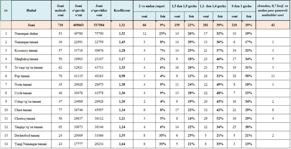 2023-2024 o’quv yilida viloyatdagi mavjud ta’lim muassasalari