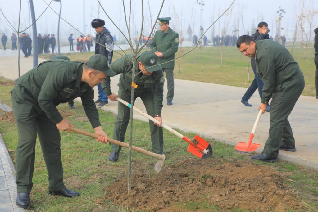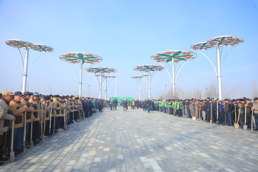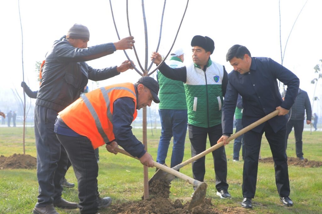Shundan so‘ng jonliq so‘yilib, oqsoqollarning duosi bilan bog‘ hududida ko‘chat ekishga kirishildi. Har bir mehnat jamoalari o‘zlariga ajratilgan maydonlarga noyob manzarali daraxt ko‘chatlari o‘tqazdilar. Shu kunning o‘zida boqqa 8 ming tupga yaqin ko‘chat joylashtirildi.